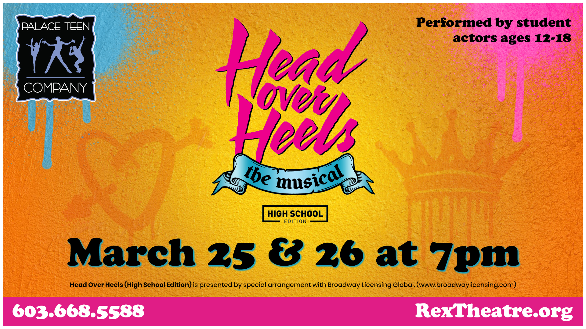 Performed by the Palace Teen Company (student actors ages 12-18). A hilarious, exuberant celebration of love, this bold musical comedy follows the escapades of a royal family on an outrageous journey to save their beloved kingdom from extinction – only to discover the key to their realm’s survival lies within each of their own hearts. This laugh-out-loud love story is set to the music of the iconic 1980’s all-female rock band The Go-Go’s, including the hit songs, “We Got the Beat,” “Our Lips Are Sealed,” “Vacation,” Belinda Carlisle’s “Heaven is a Place on Earth” and “Mad About You.” Buy Tickets   Head Over Heels (High School Edition) Songs by The Go-Go’s Based on ‘The Arcadia’ by Sir Philip Sidney Conceived and Original Book by Jeff Whitty Adapted by James Magruder Original Broadway Production produced by Christine Russell – Louise Gund – Donovan Leitch – Rick Ferrari – Gwyneth Paltrow Scott Sigman – Hunter Arnold – Tom Kirdahy – Jordan Roth The World Premiere of “Head Over Heels” took place at Oregon Shakespeare Festival Bill Rauch/Artistic Director; Cynthia Rider/Executive Director Developed with the support of New York Stage and Film & Vassar’s Powerhouse Theater, Summer 2016 Head Over Heels (High School […]